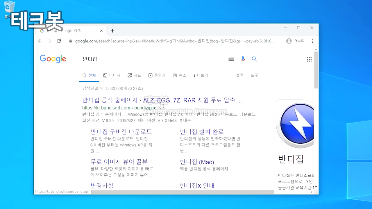 먼저 웹 브라우저를 열고 구글에 접속합니다. 검색창에 반디집이라고 검색합니다 맨 위에 있는 공식 홈페이지를 클릭합니다.
