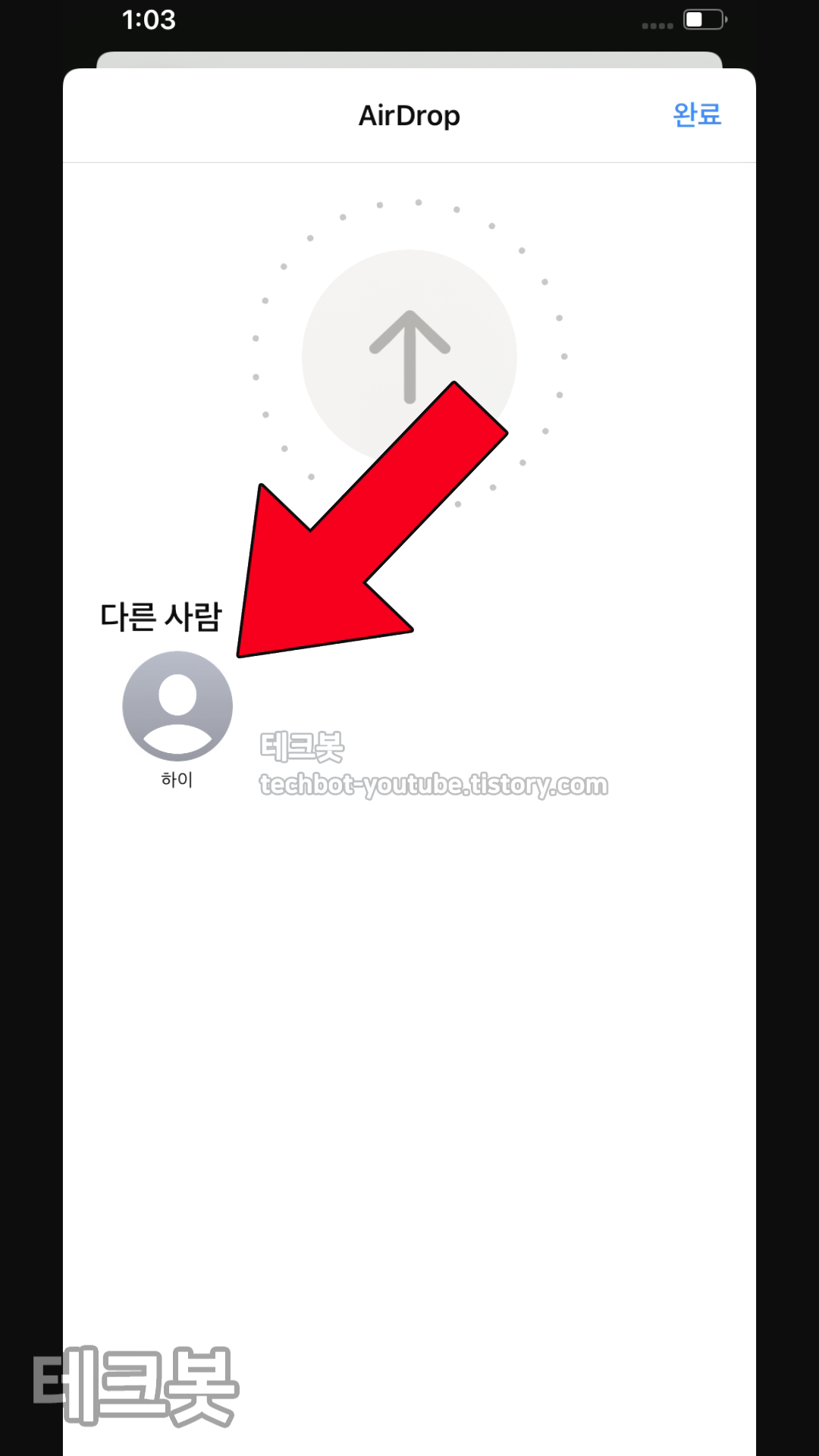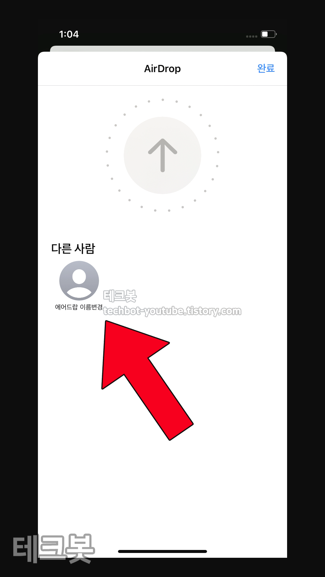 다른 기기를 통해 에어드랍을 확인하면 내 기기 에어드랍 이름이 변경되어 있는것을 확인할 수 있습니다.