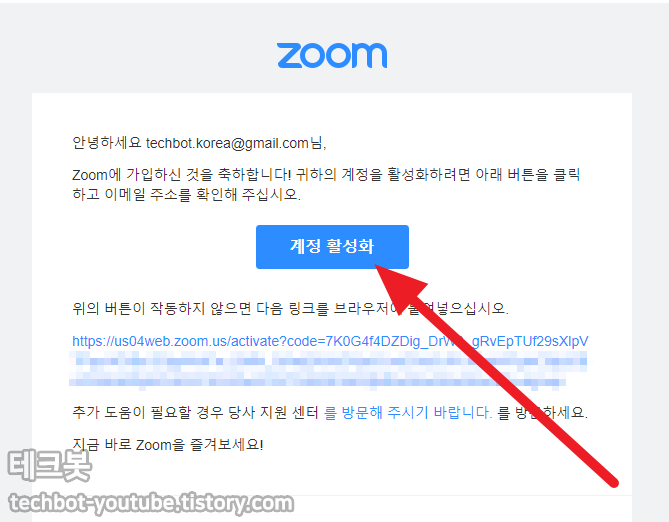 이메일을 확인해보면 위와 같은 메시지를 확인할 수 있습니다. 계정 활성화 버튼을 누릅니다.