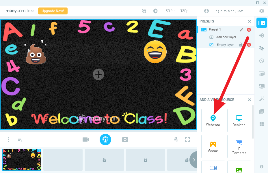 Webcam을 클릭합니다.