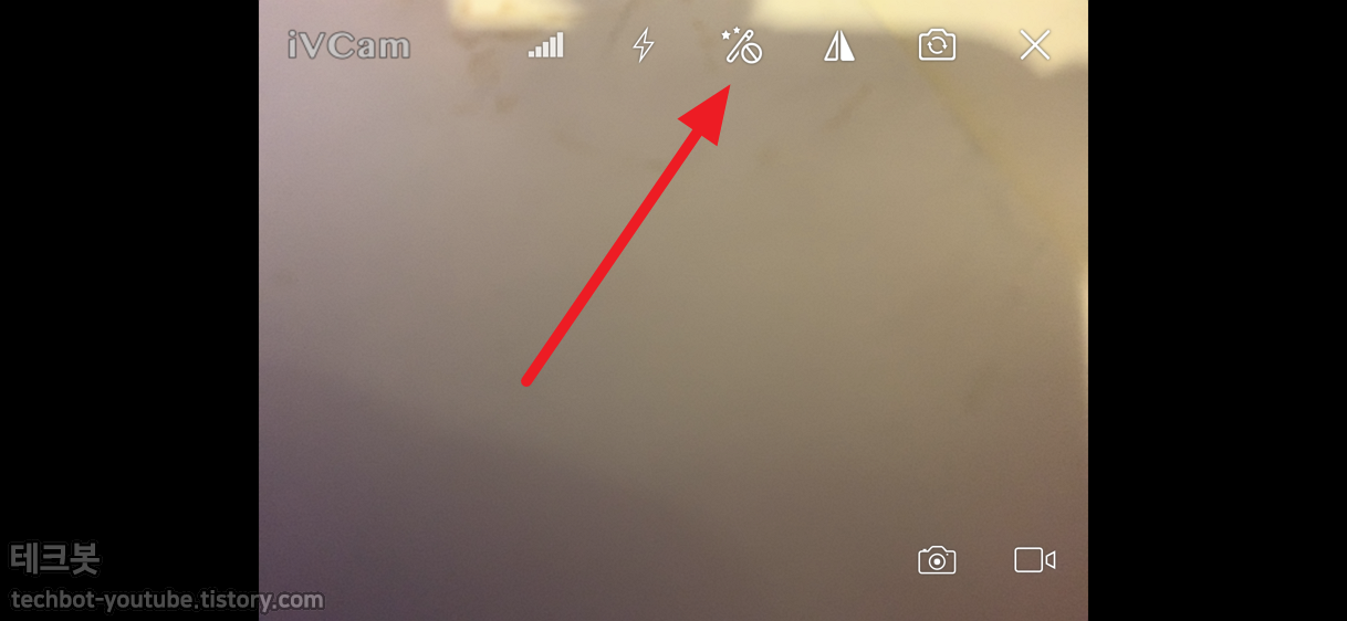 접속에 성공하면 화면이 나옵니다. 마술봉 모양을 누르면 뽀샤시 효과도 줄 수 있습니다.