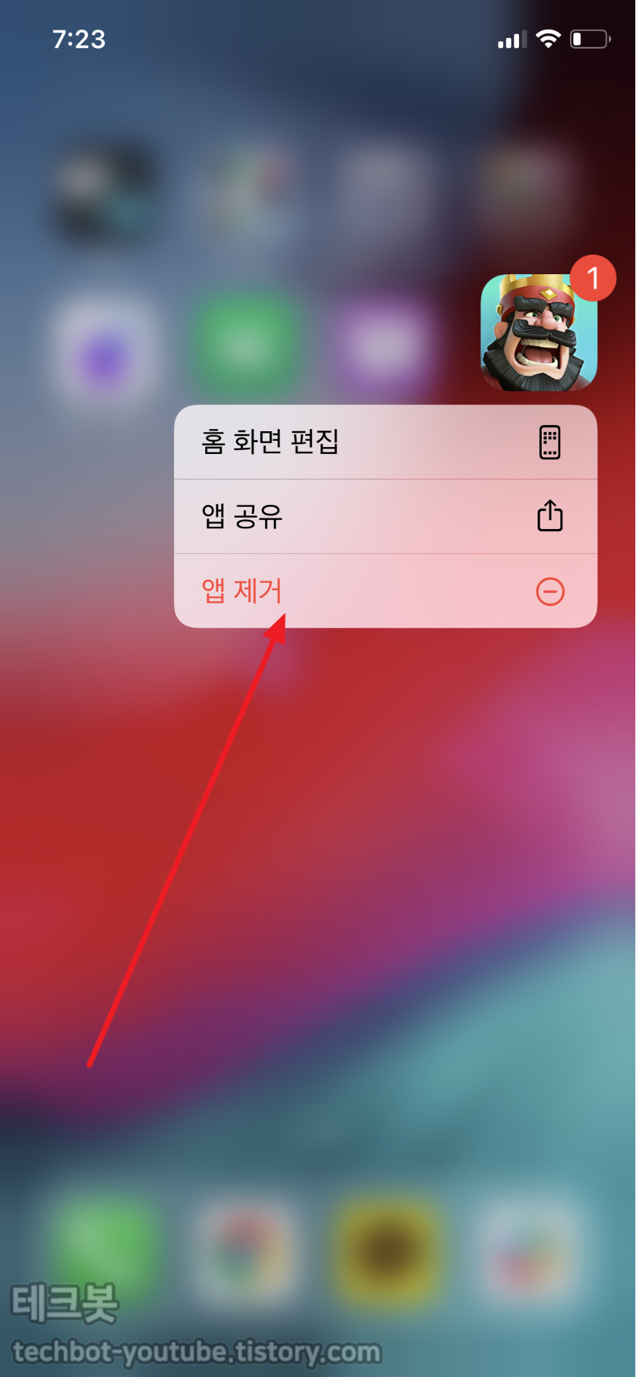 앱 제거 버튼을 터치합니다.