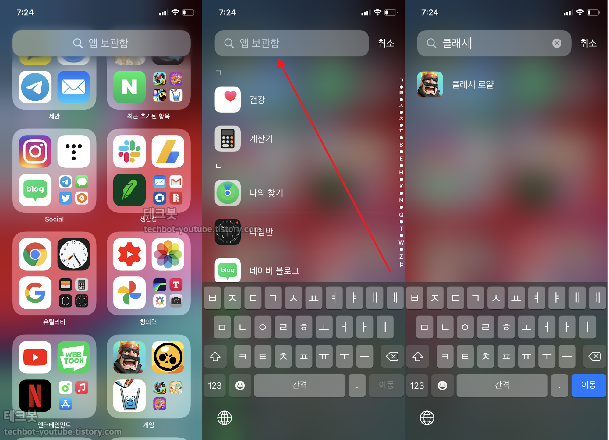 맨 위의 앱 보관함 검색을 이용하면 쉽게 앱을 검색할 수도 있습니다.
