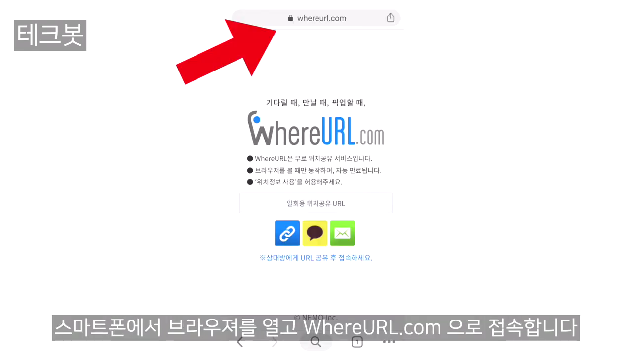 먼저 스마트폰에서 인터넷 브라우져를 열고 https://whereurl.com 으로 접속합니다