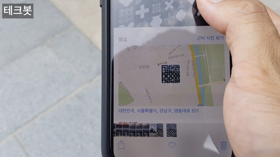 사진을 받은 후에 아이폰에서는 앨범에서 스크롤만 살짝 내리면 위치 정보가 보입니다. 비밀채팅과 오픈채팅에서도 작동하는 것을 확인 했습니다. 악용될 수도 있기 때문에 카카오톡에서 이 부분을 빨리 고쳐줬으면 좋겠네요.