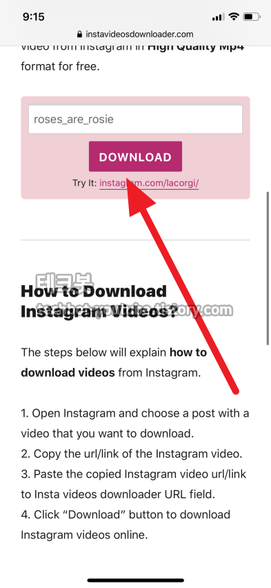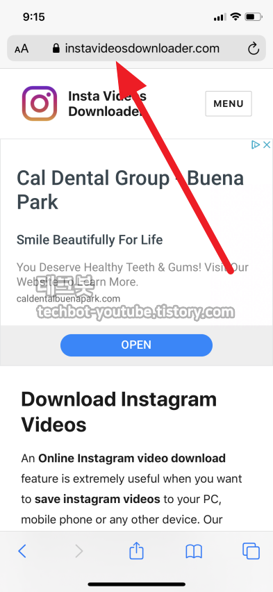 (아이폰 기준) 사파리를 이용해서 https://instavideosdownloader.com/ 로 접속합니다. 안드로이드나 PC에서는 아무 웹 브라우져로 접속합니다.