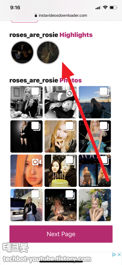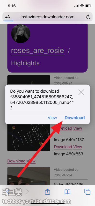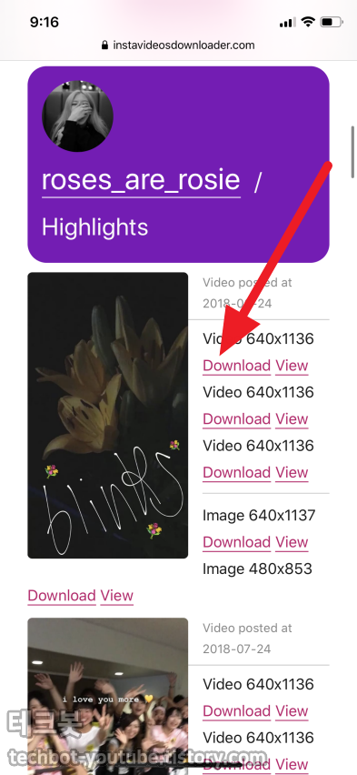 원하는 하이라이트를 누르면 다운로드 하거나 볼수 있습니다. 스토리, 사진, 동영상도 동일합니다.
