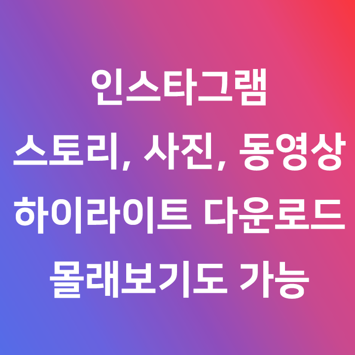 이번 글에서는 인스타그램에 있는 여러가지 미디어를 다운받을 수 있는 방법에 대해 알아보겠습니다. 이 방법을 사용하면 인스타그램 앱을 이용하지 않고도 인스타PC버젼처럼 이용 가능하며 몰래보기도 가능합니다.