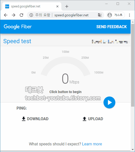 위 테스트한 결과 속도는 미국에서 구글 파이버를 사용한 속도입니다.