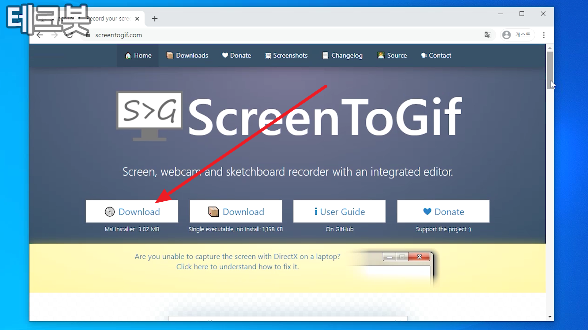 https://www.screentogif.com/ 로 접속합니다